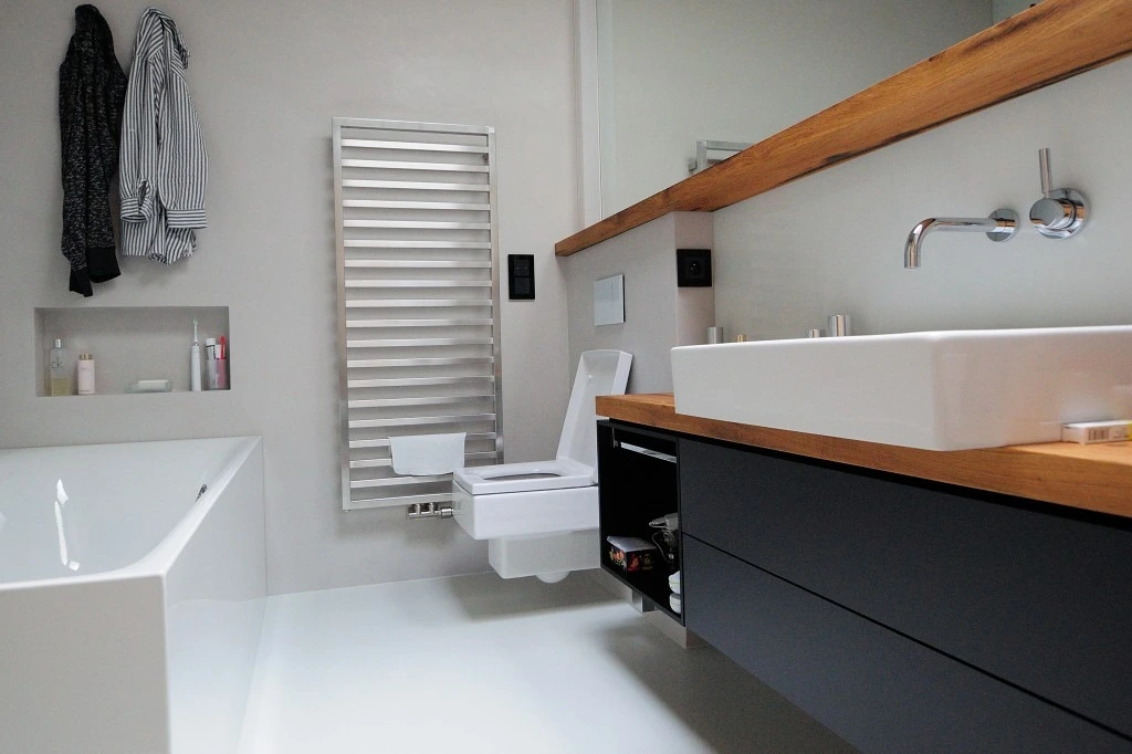 Po nepříliš úspěšných pokusech s různými systémy na trhu se vyskytujících, jsme pečlivě zvolili stěrku Beton-CiRÉ. Mírně jsme jen modifikovali správnou volbou uzávěry, abychom pro Vás vyvinuli spolehlivý systém, který si uchovává přírodní vzhled a zároveň je plnohodnotnou alternativou keramických obkladů ve sprchových koutech. Dnes, po šesti letech aplikací Beton-CiRÉ, v nejextrémnějších případech aplikované i na dřevěné podklady, můžeme zodpovědně konstatovat, že je maximálně funkční. Svou omezenou pružností také překlenuje mírné pohyby v konstrukci a mikrotrhlinky. Aplikujeme prakticky na jakýkoliv suchý, pevný a rovný povrch a vyberete si ze tří základních typů aplikace.